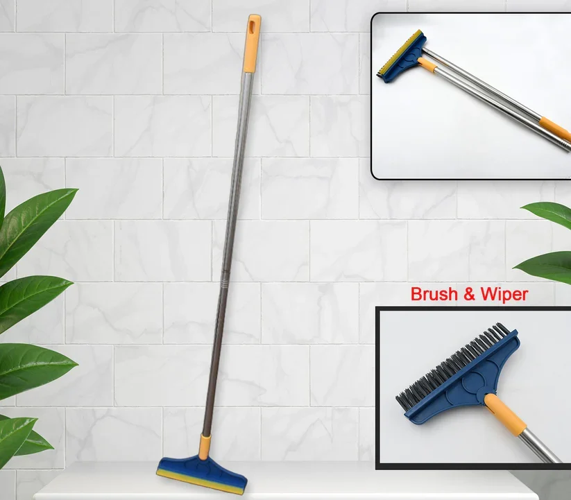 • 2 IN 1 BRUSH AND SCRAPER You can use the back of the scraper bar to scrub the waste water after sweeping your floor. Scratch the water and brush your floor at the same time, clean and dry with a single wipe. Finish your cleaning job quickly.