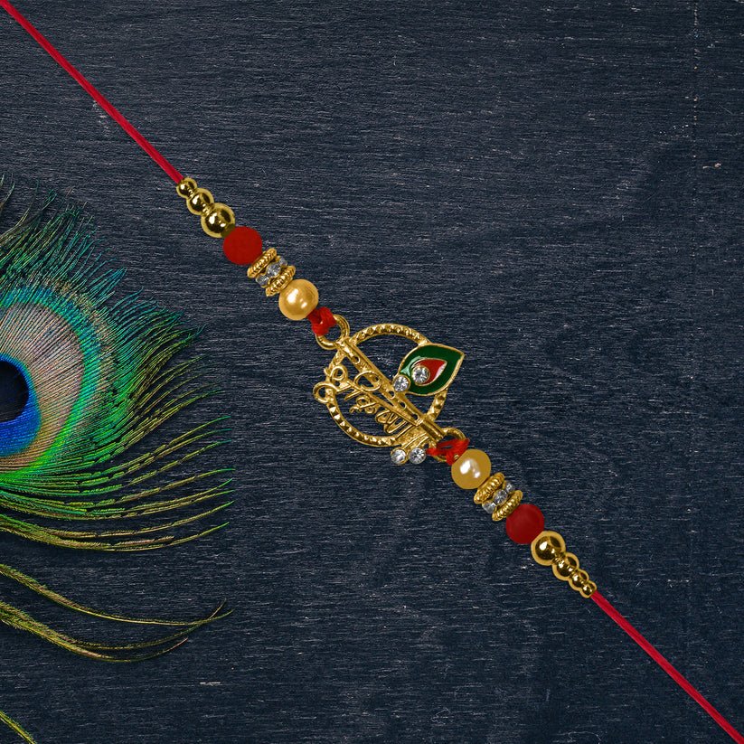 Krishna Name Rakhi with Decorative Beads and Stones