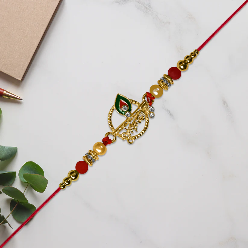 Be the first to review “Krishna Name Rakhi with Decorative Beads and Stones”
